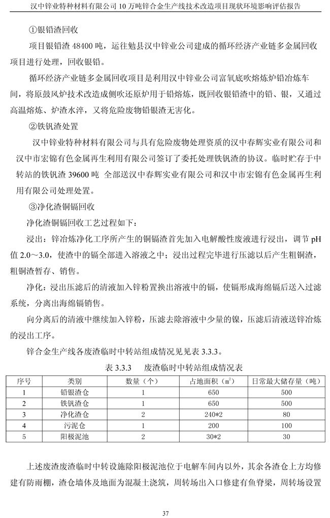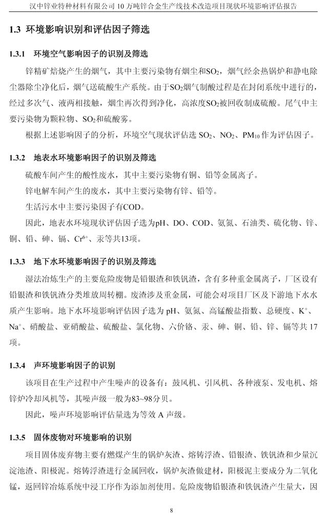 項目實施單位:漢中鋅業有限責任公司 評估報告編制單位:西安建筑科技大學