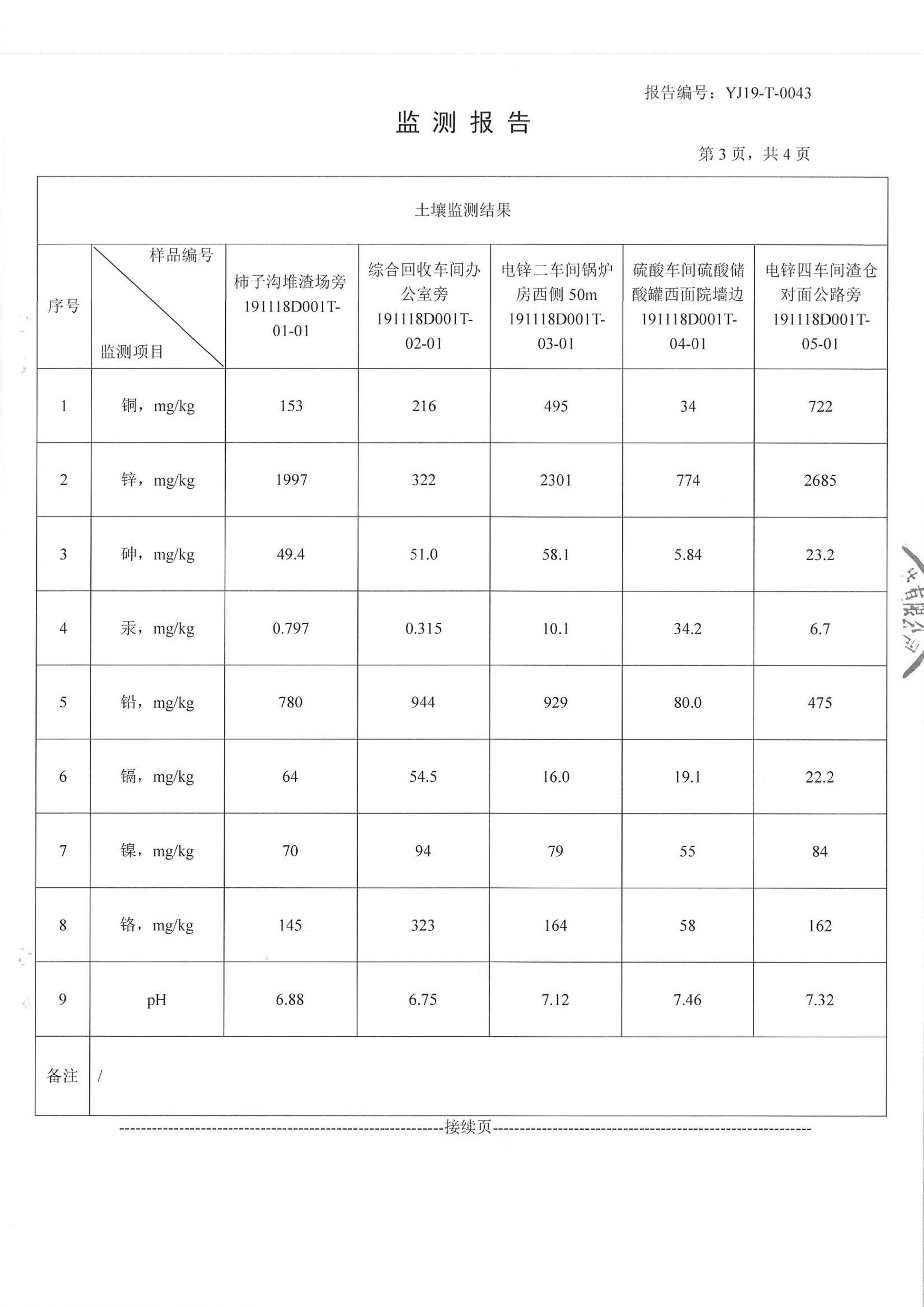 漢中鋅業有限責任公司2019年度土壤自行監測公示