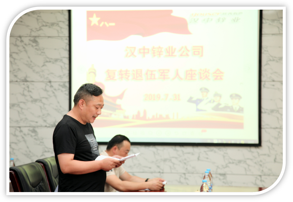 王正民代表公司黨委向公司全體復(fù)轉(zhuǎn)退伍軍人致以節(jié)日的問候和祝賀。他講到,回望過去,你們以“特別能吃苦,特別能戰(zhàn)斗,特別能奉獻”的軍人精神,把美好的青春年華奉獻給了祖國和人民;放眼當(dāng)下,你們退伍不褪色,奉獻在漢鋅,建功在有色;展望未來,漢鋅的事業(yè)任重道遠(yuǎn),在包括復(fù)轉(zhuǎn)退伍軍人在內(nèi)的全體干群的共同努力下,一定會有一個美好的未來!