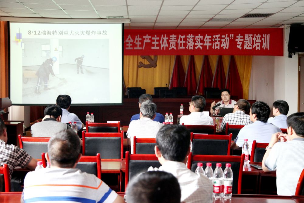 為積極響應(yīng)集團(tuán)公司“企業(yè)安全生產(chǎn)主體責(zé)任落實年活動”號召,按照公司“安全月”活動安排,進(jìn)一步強(qiáng)化全員安全發(fā)展觀念,提升全員安全素質(zhì),6月13日上午,公司聘請西安科技大學(xué)教授劉紀(jì)坤對管理人員進(jìn)行了落實企業(yè)安全生產(chǎn)主體責(zé)任專題培訓(xùn)。公司領(lǐng)導(dǎo),各單位各部門副科級以上管理人員以及各車間專職安全員共計100余人參加了培訓(xùn)。