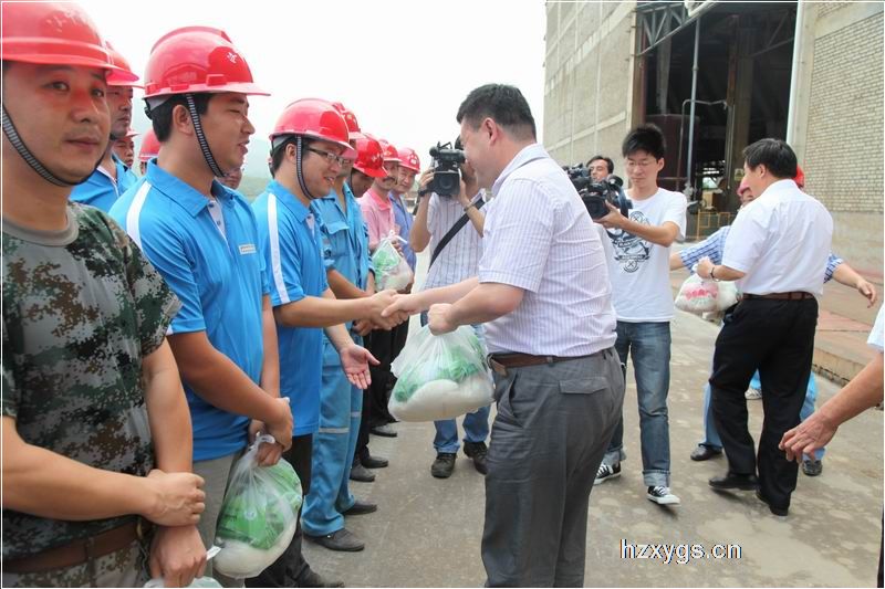 在生產(chǎn)現(xiàn)場,魏副市長發(fā)表了簡短的講話。他首先代表市委、市政府向炎炎夏日仍然奮戰(zhàn)在生產(chǎn)一線的鋅業(yè)公司職工表示親切的慰問和衷心的感謝。他指出,漢中鋅業(yè)公司廣大職工在酷暑中依然堅(jiān)守崗位,奮戰(zhàn)在生產(chǎn)第一線,為全市經(jīng)濟(jì)發(fā)展作出了貢獻(xiàn)。將這些防暑降溫物品發(fā)放到大家手中,一是希望大家能夠在崗位中體會到一點(diǎn)清涼,更好地立足崗位,做好本職工作;二是提醒大家一定要做到安全生產(chǎn),在做好防暑降溫工作的同時,堅(jiān)決杜絕安全隱患發(fā)生;三是希望公司繼續(xù)加快發(fā)展,爭取做到企業(yè)有發(fā)展,職工得實(shí)惠,為漢中地方經(jīng)濟(jì)發(fā)展做出新的更大的貢獻(xiàn)。