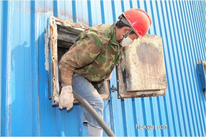 全副武裝的工人師傅鉆入電除塵清灰